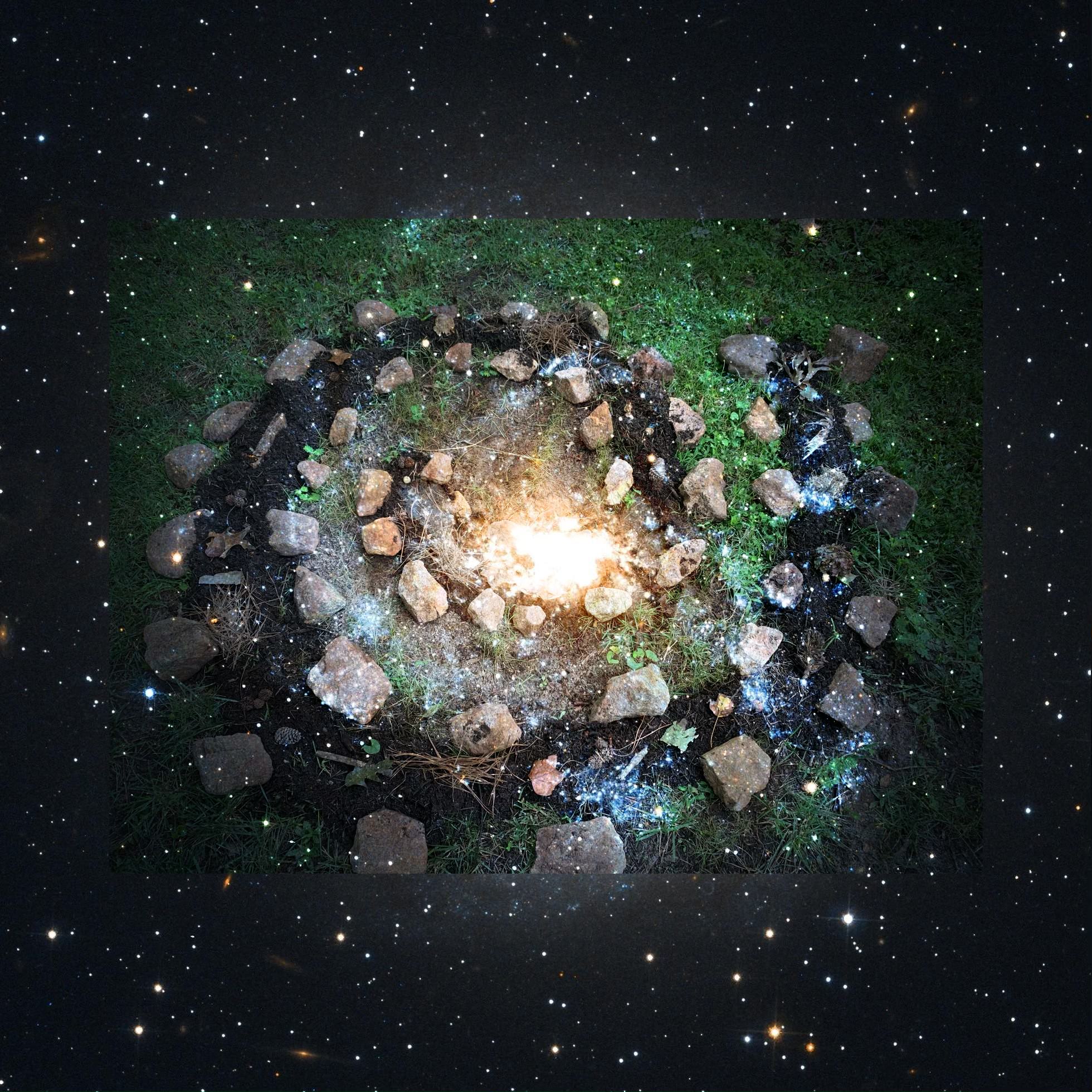 I took a picture of this sculpture and then used an app to overlay and merge it with a picture of a spiral galaxy. It makes it look like it is woven with stardust, which is also in all of us. This reminds us that we are connected to these spirals and regenerative systems. By enhancing the natural design with a technological process, it speaks to the human potential to evolve to not only survive, but thrive.